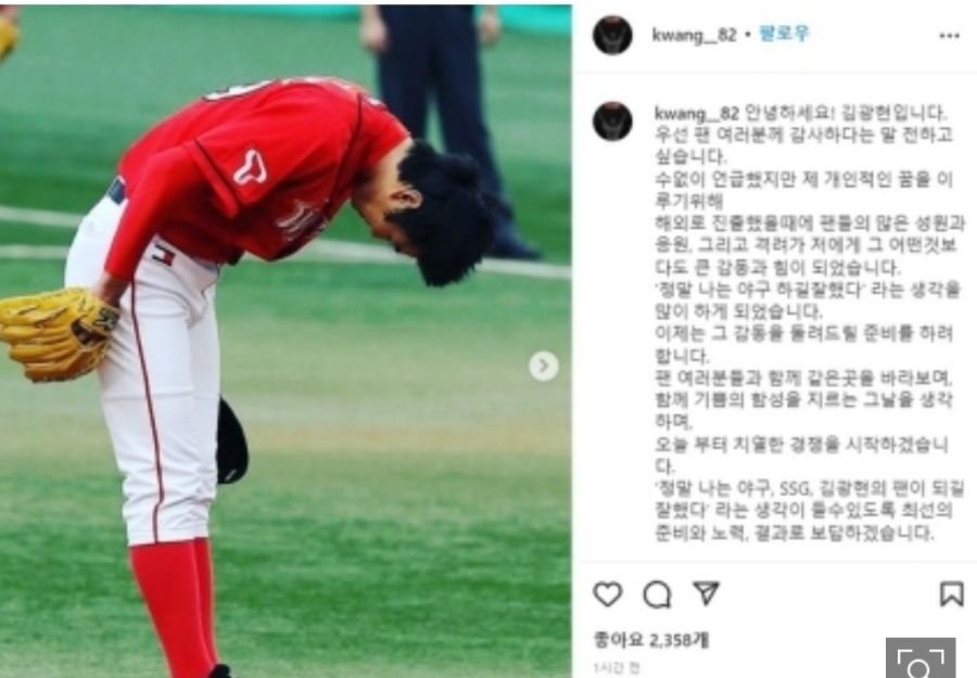 역시 전영진 구단주와 SSG가 리그 발전을 위해 적극적인 활동을 펼쳐 나도 함께하고 싶은 가을 경험이 있고 최고 대우로 나의 가치를 인정해주며 친정 복귀를 빨리 결정.
